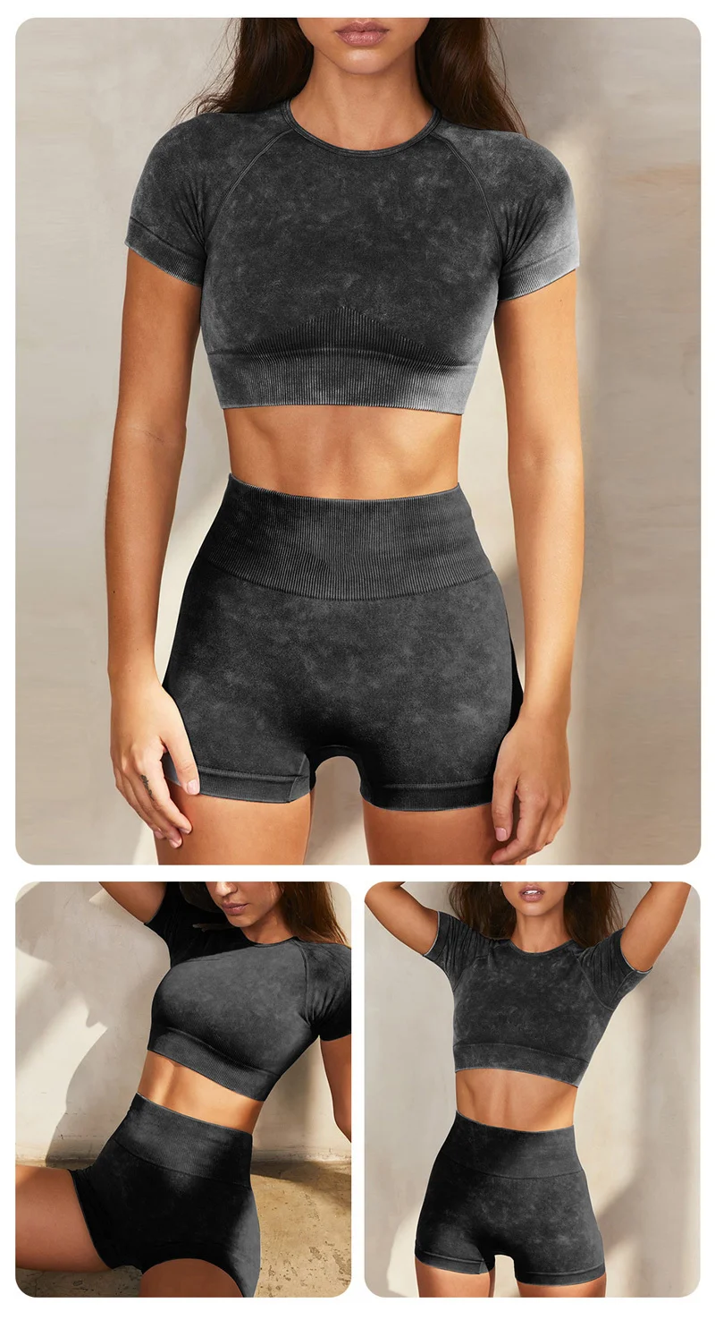 port Set Women Seamless Yoga Set Sports Bra Long Sleeve Crop Top Sports Top Gym Leggings Yoga Shorts Workout Clothes For Women